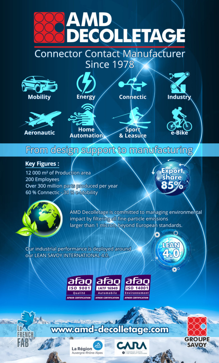 AMD DECOLLETAGE is a leading member of Groupe SAVOY Mechanical BU (Business Unit) with ALPES USINAGE and SAVOY TECHNOLOGY. Our expertises are : turning #milling #machining and stamping.
